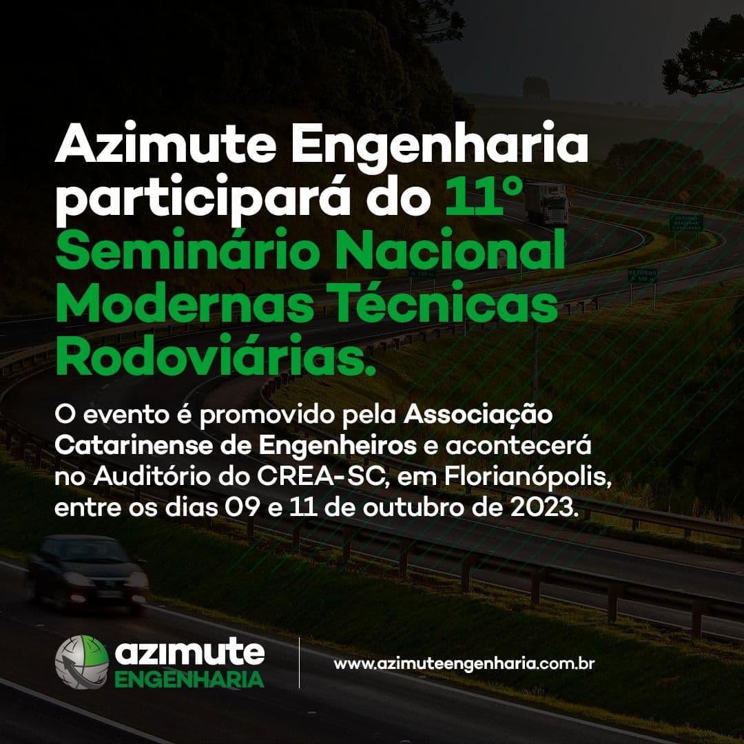 Entre os dias 09 e 11 de outubro de 2023 estaremos no Auditório do CREA-SC, em Florianópolis, representando todo o Grupo Azimute.