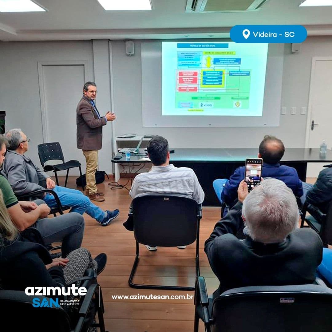 A Azimute San não para! Em Videira - SC, tivemos a oportunidade de apresentar um Estudo de Viabilidade dos Serviços de Água e Esgoto para o município.