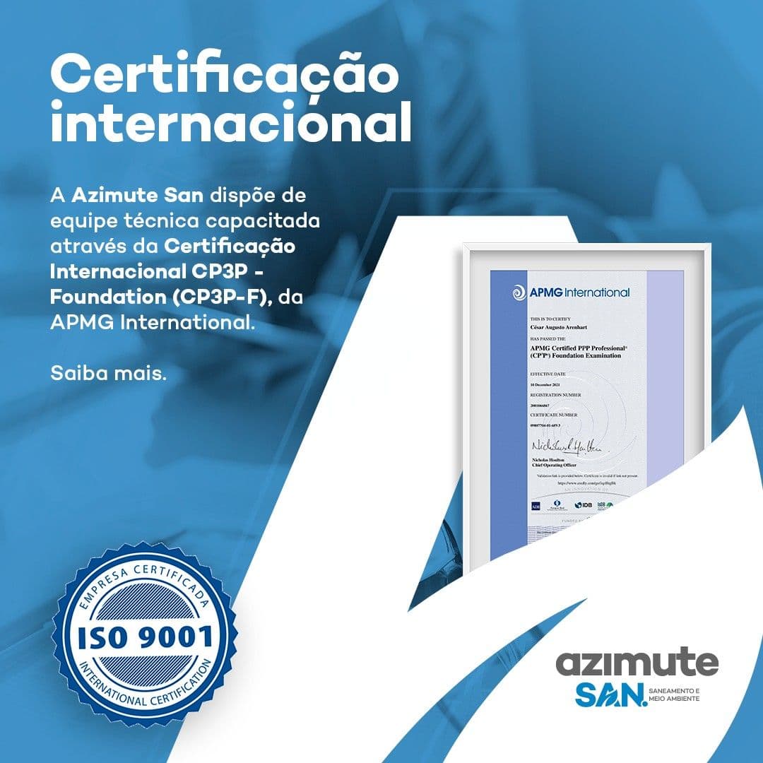 Você sabia que a Azimute San - Saneamento e Meio Ambiente dispõe de equipe técnica capacitada através da Certificação Internacional CP3P - Foundation (CP3P-F), da APMG International?