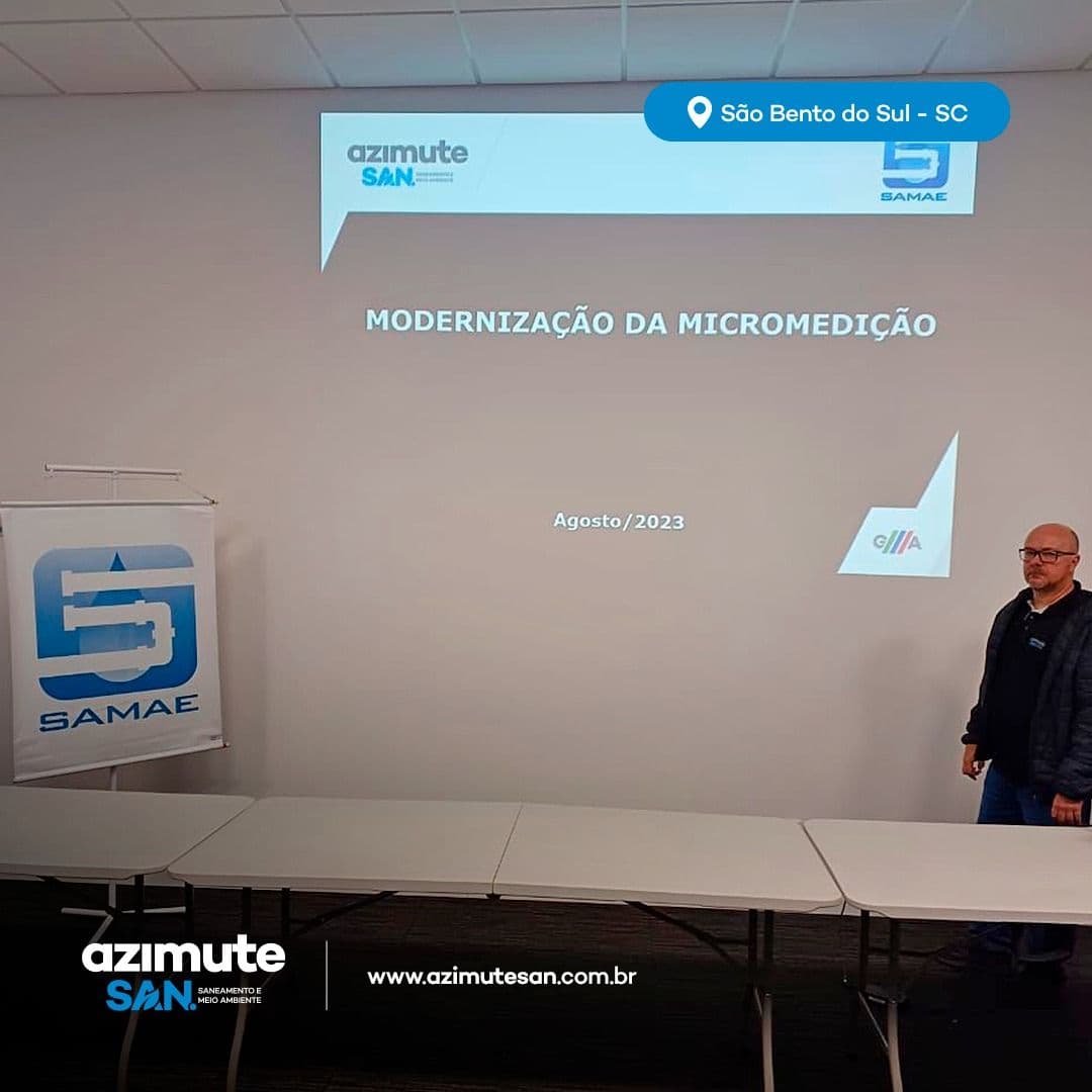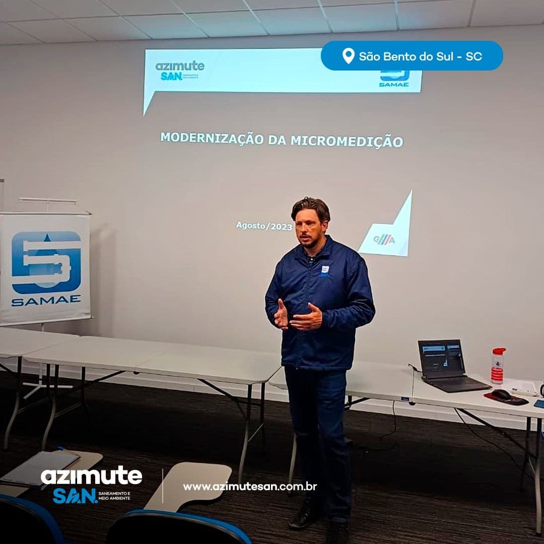 No dia 14/08, o Engenheiro Sanitarista e Ambiental Ricardo R. Meyer, da Azimute San - Saneamento e Meio Ambiente, fez a exposição do Planejamento Estratégico para Modernização da Micromedição para o SAMAE de São Bento do Sul - SC.