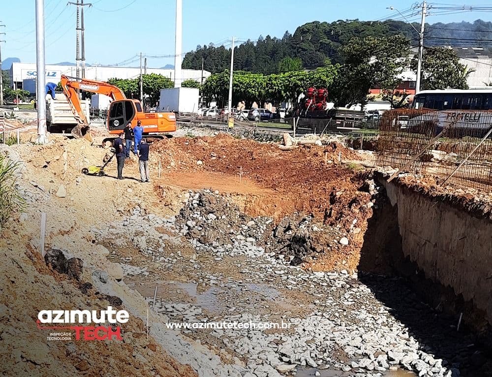 Em trabalho recente, a Azimute Tech foi contratada pela empresa Schulz, de Joinville - SC, para localizar de forma precisa um cabeamento subterrâneo de alta tensão que transpassa as obras do Elevado junto ao Eixo Hans Dieter Schimidt (SC-108). Esse cabeamento, instalado em uma profundidade aproximada de cinco metros, conecta a empresa a uma subestação da Celesc.