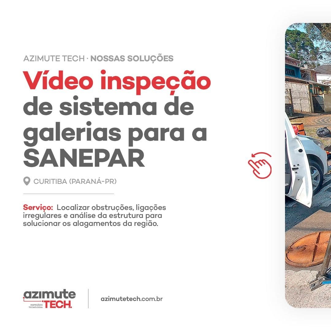 Para realização de inspeções em redes subterrâneas, a inspeção visual especializada é uma solução segura, eficiente e confiável. Conte com a Azimute Tech: Temos as melhores soluções de inspeções em tubulações e mapeamentos de redes. Conheça nossos serviços.