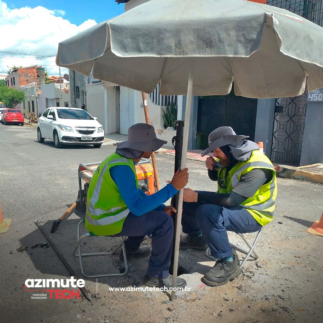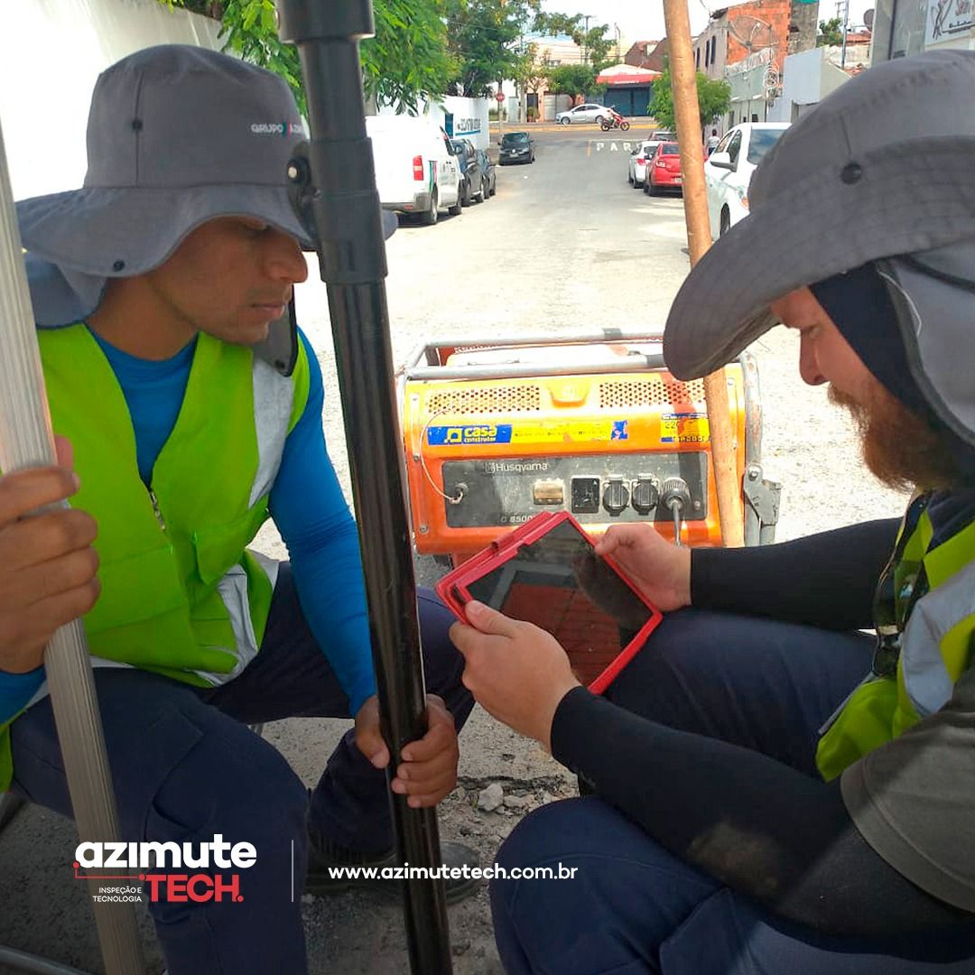 Nos registros da publicação, você confere a equipe da Azimute Tech em campo, trabalhando na identificação de ligações clandestinas de esgoto na rede de drenagem do município.