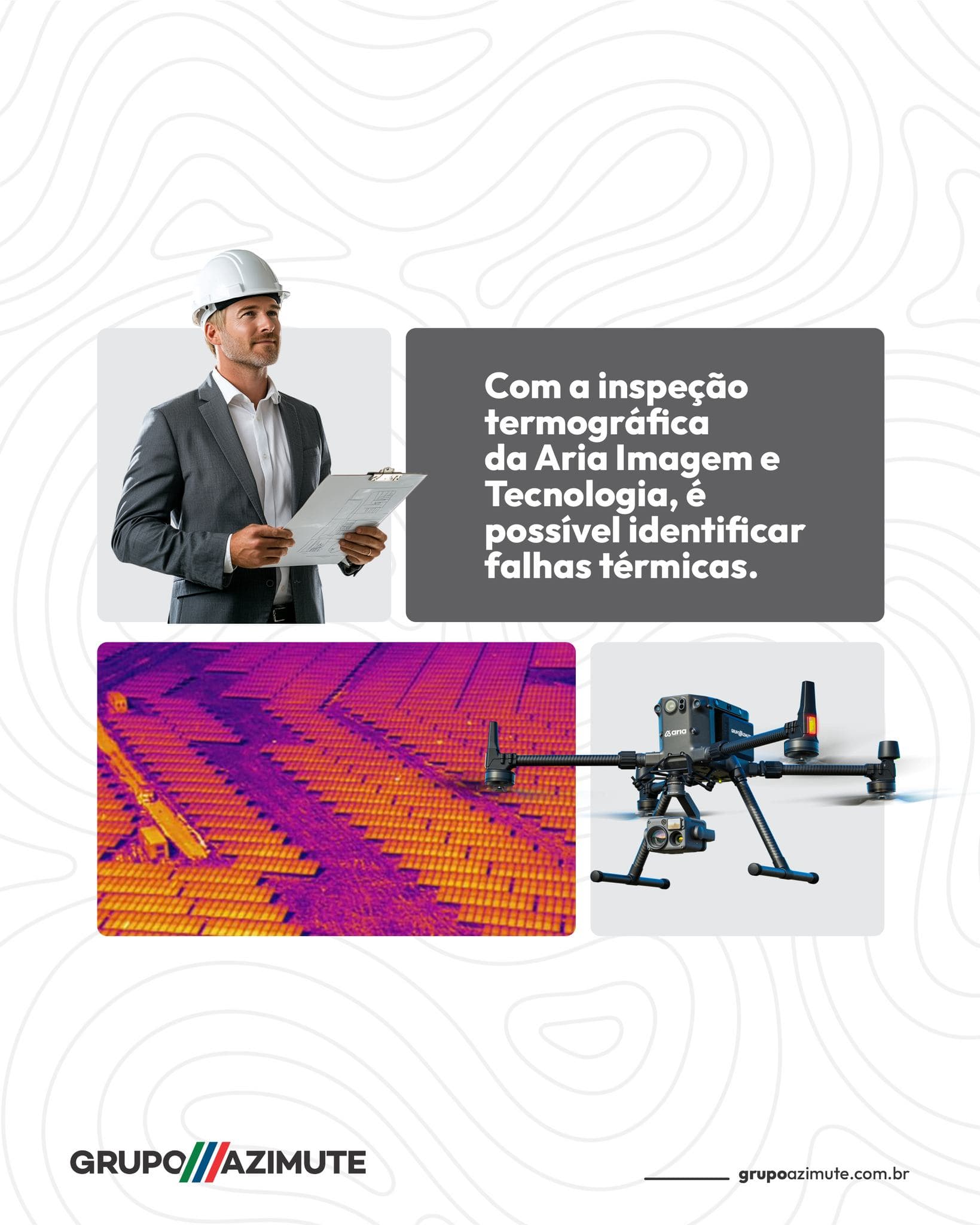 Pensando nisso, a Aria Imagem e Tecnologia, empresa do Grupo Azimute, oferece soluções avançadas em inspeção termográfica aérea, utilizando drones equipados com sensores térmicos de alta precisão para detectar falhas antes mesmo que se tornem visíveis ou causem impactos.