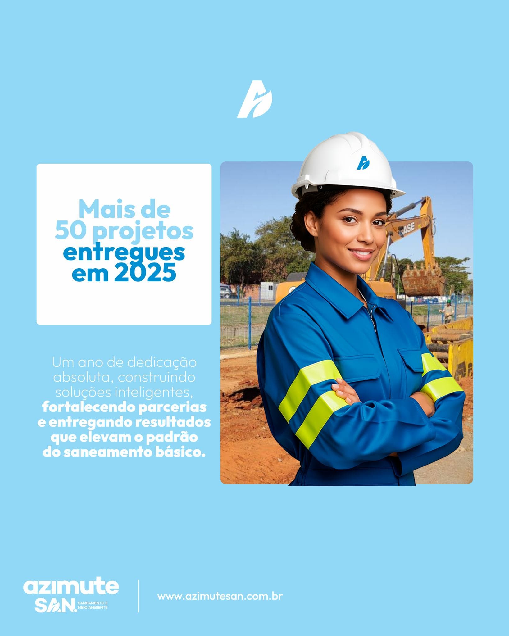 O ano de 2025 representa um período de importante avanço para a Azimute San. Com mais de 50 projetos entregues em diferentes regiões do Brasil, reafirmamos nosso compromisso com a expansão e a modernização do saneamento básico no país.