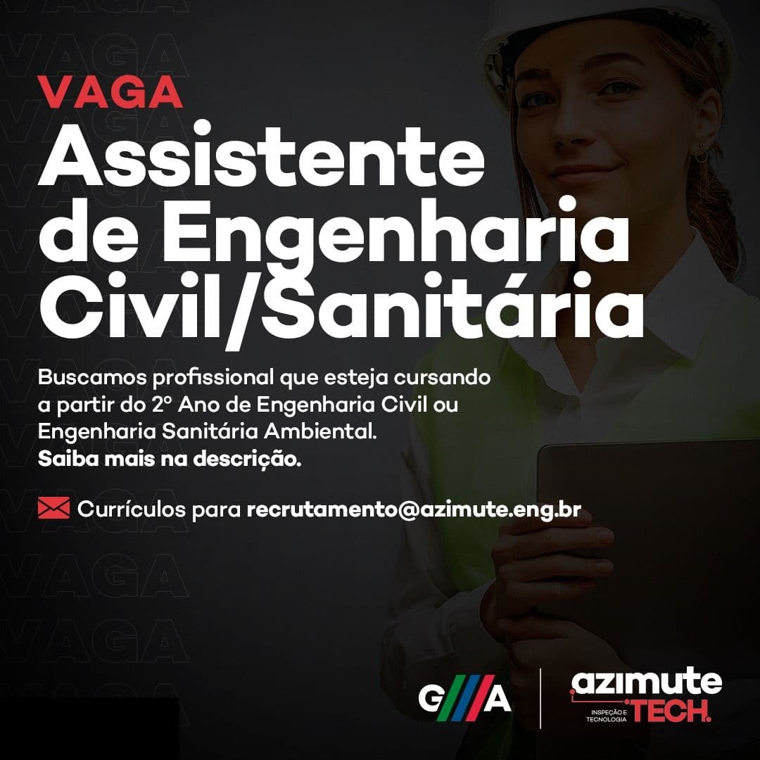 Buscamos profissional que esteja cursando a partir do 2º Ano de Engenharia Civil ou Engenharia Sanitária Ambiental. Que tenha PESSOA JURÍDICA CONSTITUÍDA para a prestação dos serviços, caso venha a ser selecionado.
