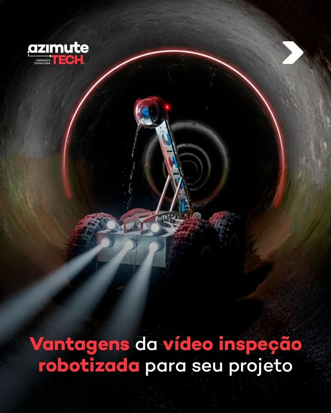 Trata-se de uma tecnologia que utiliza robôs equipados com câmeras de alta definição para registrar o interior de tubulações, galerias, redes de esgoto e drenagem pluvial. Esses robôs percorrem as redes subterrâneas sem causar qualquer dano à estrutura — o que caracteriza o método como não destrutivo.