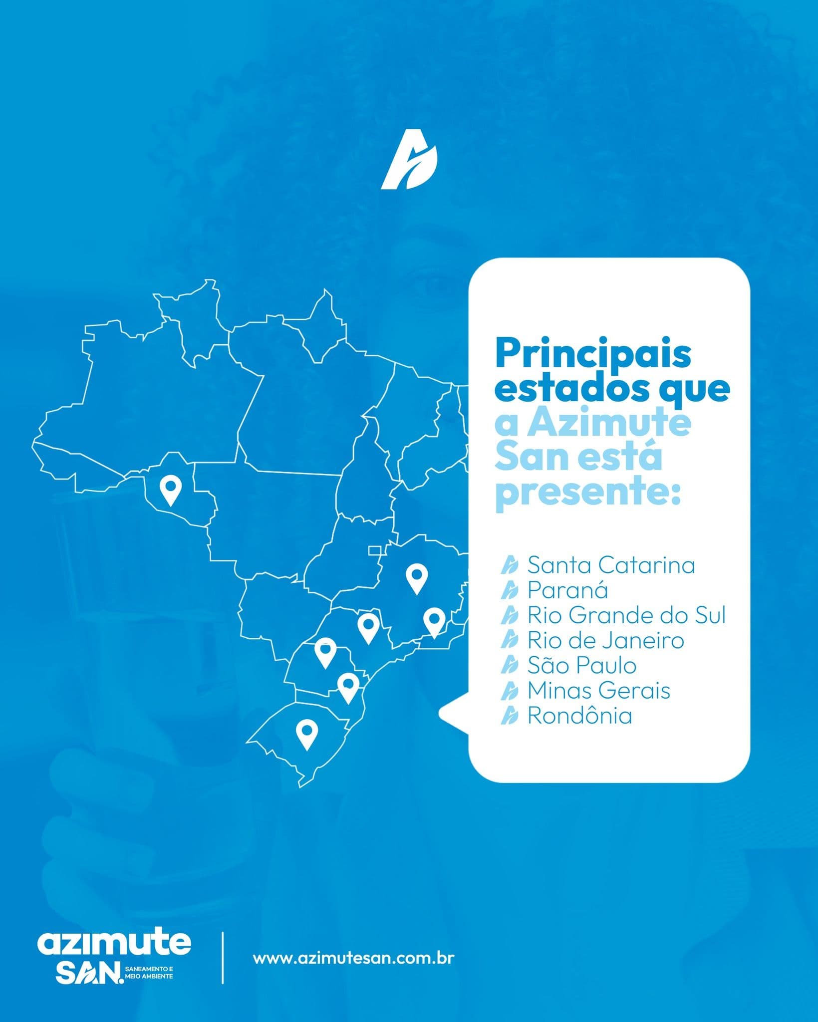 Onde houver necessidade de inovação, segurança e eficiência em saneamento, a Azimute San estará presente. Seguimos comprometidos com o crescimento do setor, levando engenharia, tecnologia e responsabilidade para cada projeto.
