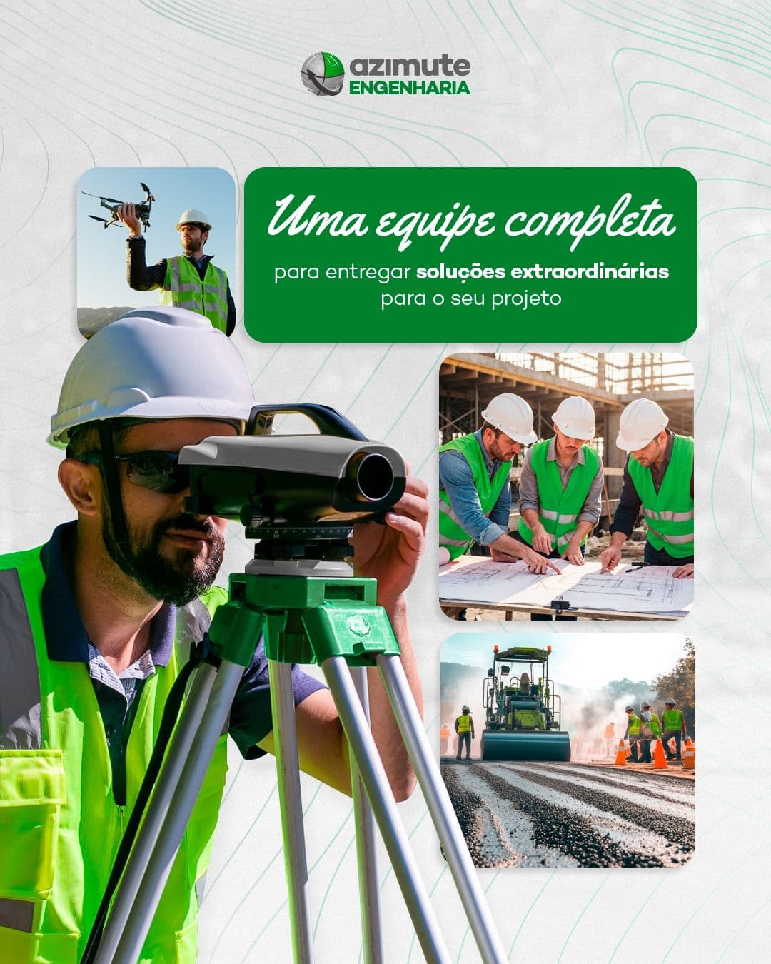Na Azimute Engenharia, acreditamos que a força de um projeto está nas pessoas que o constroem. Por isso, cada obra, estudo ou intervenção que assumimos é conduzido por uma equipe multidisciplinar altamente especializada, composta por engenheiros, topógrafos, arquitetos, técnicos e outros profissionais que compartilham um único objetivo: entregar excelência em cada etapa do projeto.